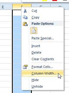 步驟 2:右鍵單擊包含要放大的單元格的列標題,然後單擊列寬選項。