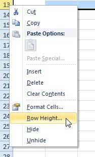 步驟 2:右鍵單擊包含要放大的單元格的行標題,然後單擊行高選項。