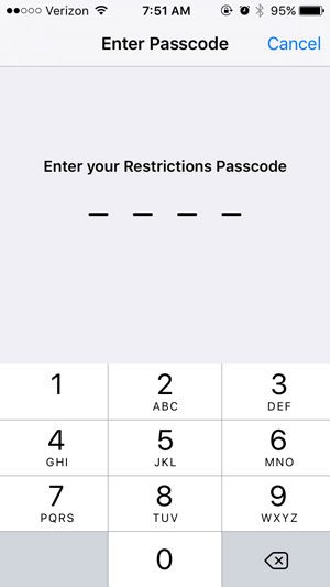 第 6 步:輸入您的限制密碼(如果當前為設備設置了密碼。)