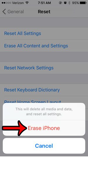 第 7 步:點擊抹掉iPhone按鈕確認您已準備好將設備恢復為出廠設置。