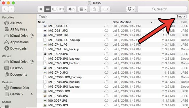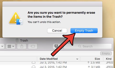第 10 步:單擊清空垃圾箱按鈕確認您希望永久刪除這些文件。