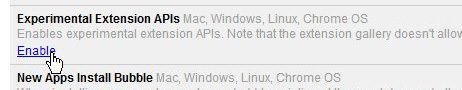 第 3 步:向下滾動到實驗性擴展 API選項,然後單擊藍色使能夠鏈接在它下面。