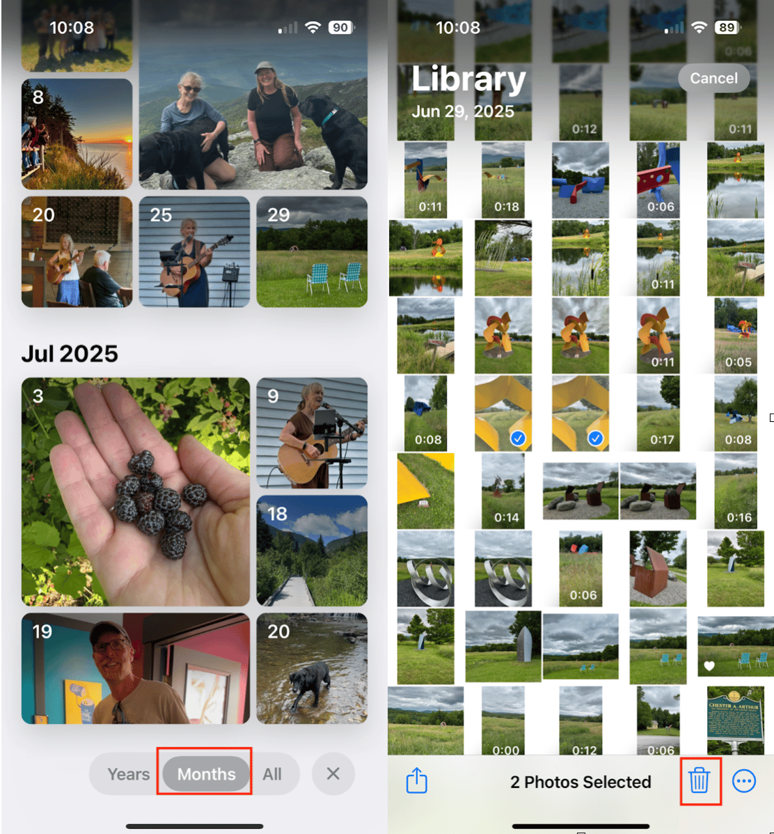 - 點擊特定日期的照片集,然後手動選擇要刪除的照片。