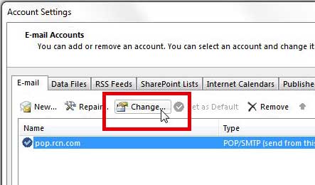步驟 4:從窗口中央的列表中選擇您的電子郵件帳戶,然後單擊改變按鈕。