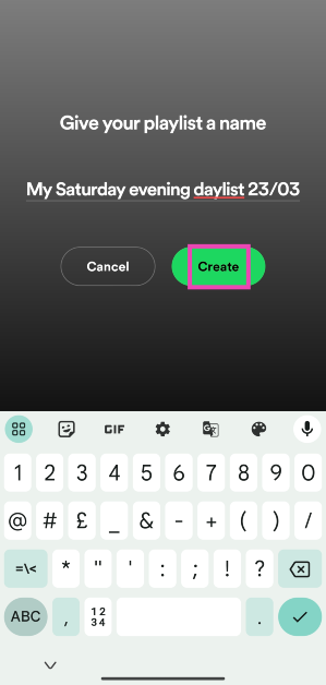 第5步:點擊加號圖標到節省將您的日程表添加到您的 Spotify 庫。