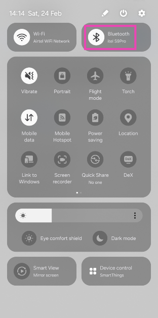 步驟一:從狀態欄處向下滑動並長按藍牙瓷磚在快速設置菜單中。
