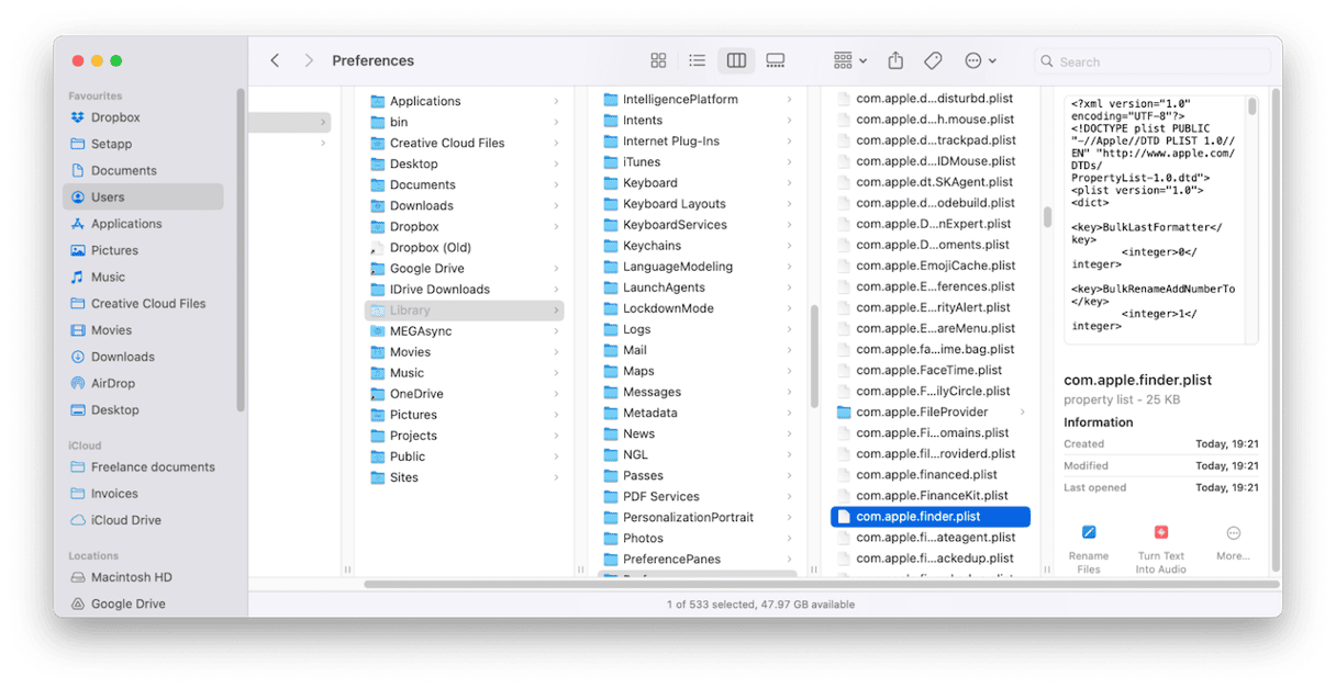 ~/Library/Preferences - 當首選項文件夾打開時,查找