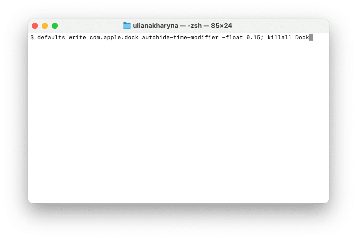 defaults write com.apple.dock autohide-time-modifier -float 0.15; killall Dock - 按回車鍵。