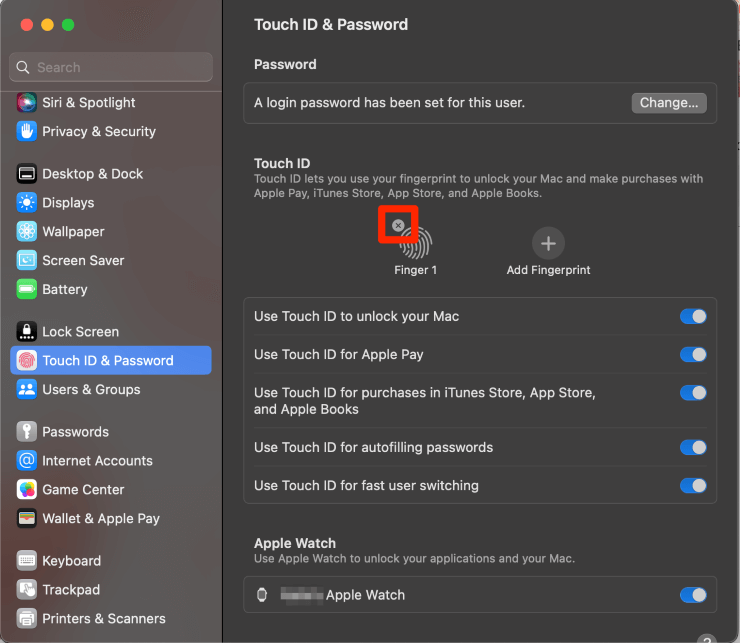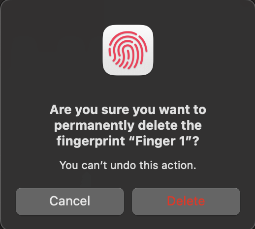 有時,刪除並重新添加指紋可以幫助刷新Mac中指紋的內存。