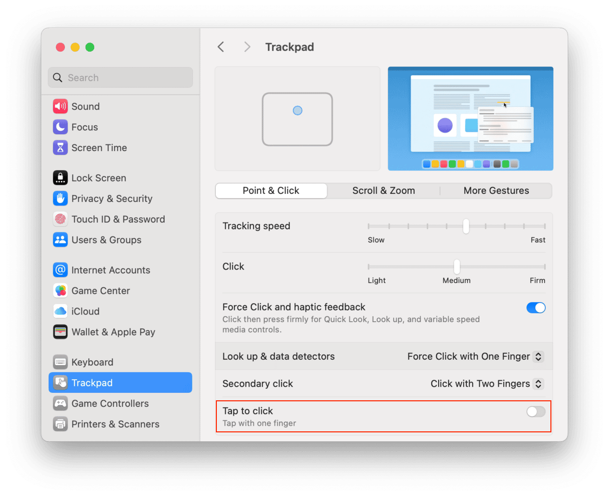 有時,這些系統設置會導致 MacBook 光標跳動問題。要查明是否屬於這種情況,請關閉“點按以單擊”: