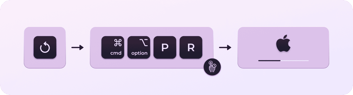 - Mac 關閉後,按下電源按鈕,然後快速按下 Command-Option-PR。