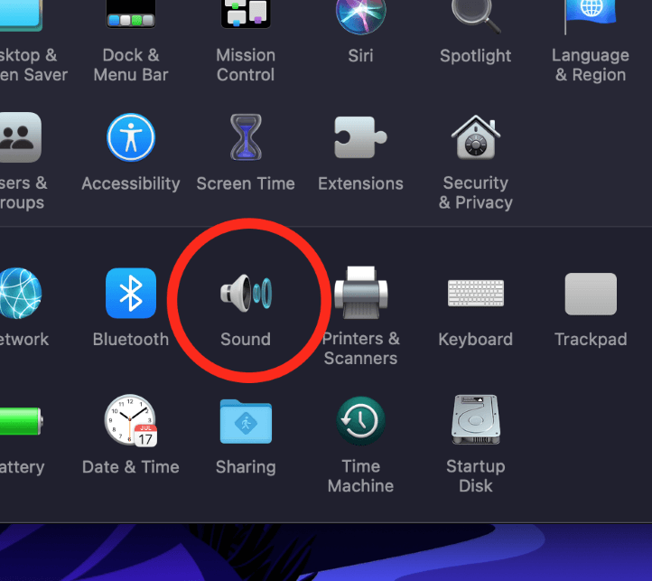 打開系統 偏好設置從你的碼頭。接下來,找到標記的圖標聲音。