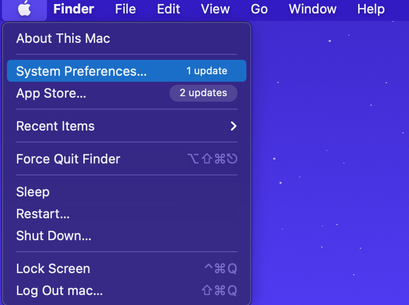 要開始使用,請選擇系統 偏好設置從菜單下的蘋果 圖示。
