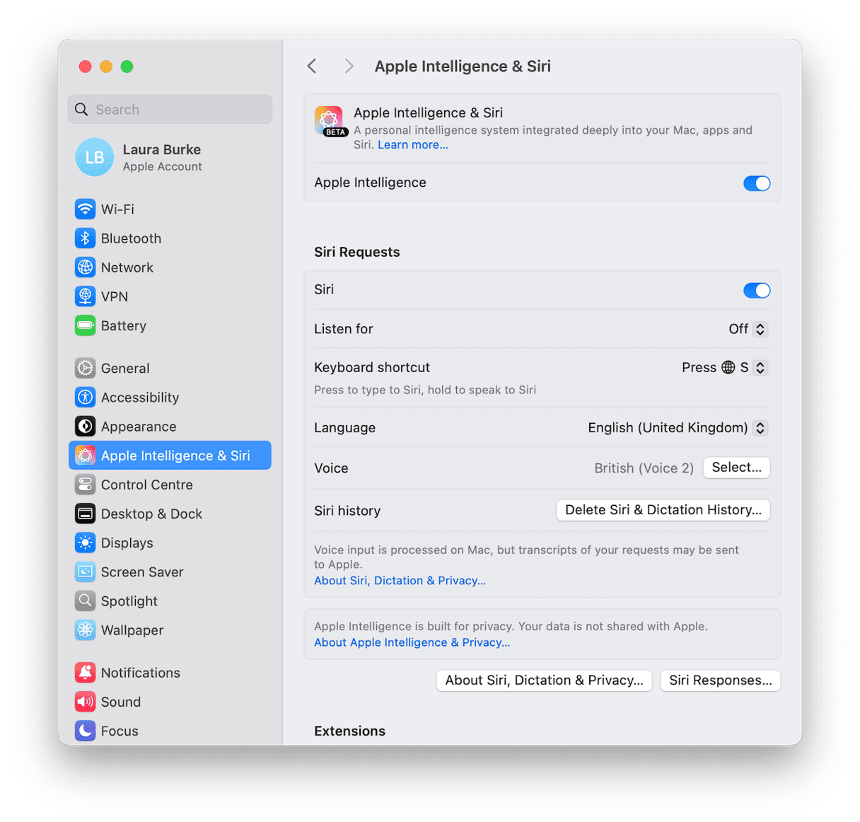 Apple Intelligence 更深入地融入到了 macOS 中,但並非所有功能都是必不可少的。我關閉了“消息”中的實時摘要,並禁用了“照片”中的背景分析。兩者都略微減少了背景活動。您可以在“系統設置”>“Apple Intelligence 和 Siri”下找到這些內容。基本上,任何您不使用的功能,只需暫時將其關閉並禁用即可。