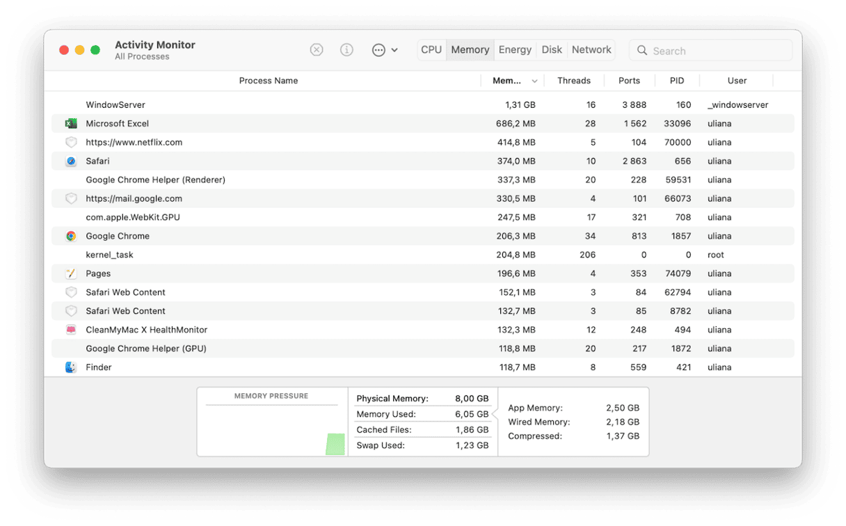 活動監視器是一個很好的工具,用於識別進程(例如 Safari 擴展)是否佔用了超過其公平份額的資源(例如內存和 CPU 週期)。有時,行為不當的進程可能會導致 Mac 運行速度變慢,因為它們提出了太多要求。