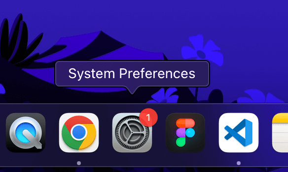首先,找到系統偏好設置圖示 在碼頭。