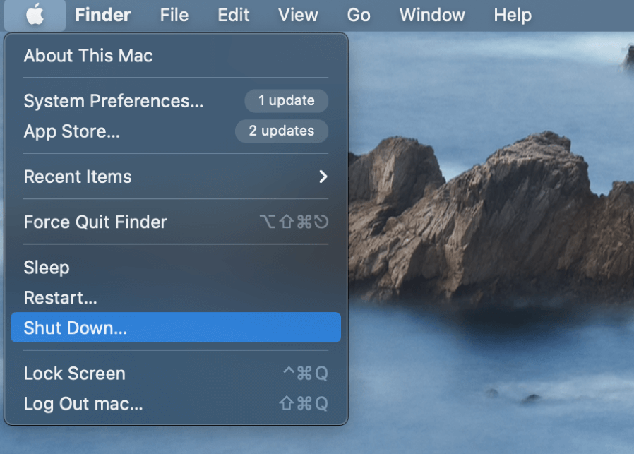 單擊蘋果 圖示在屏幕的左上角並點擊關閉 向下。