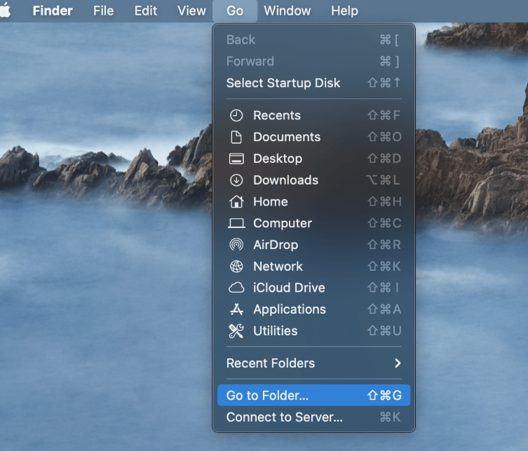 打去從屏幕頂部的查找欄中,然後選擇轉到文件夾。