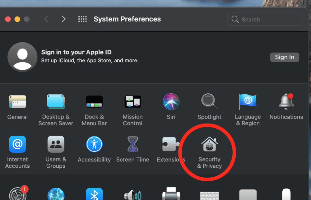 幸運的是,這是一個簡單的過程。找到您的系統 偏好設置從擴展塢或菜單欄中,然後單擊標記為“的圖標安全 和 隱私”。