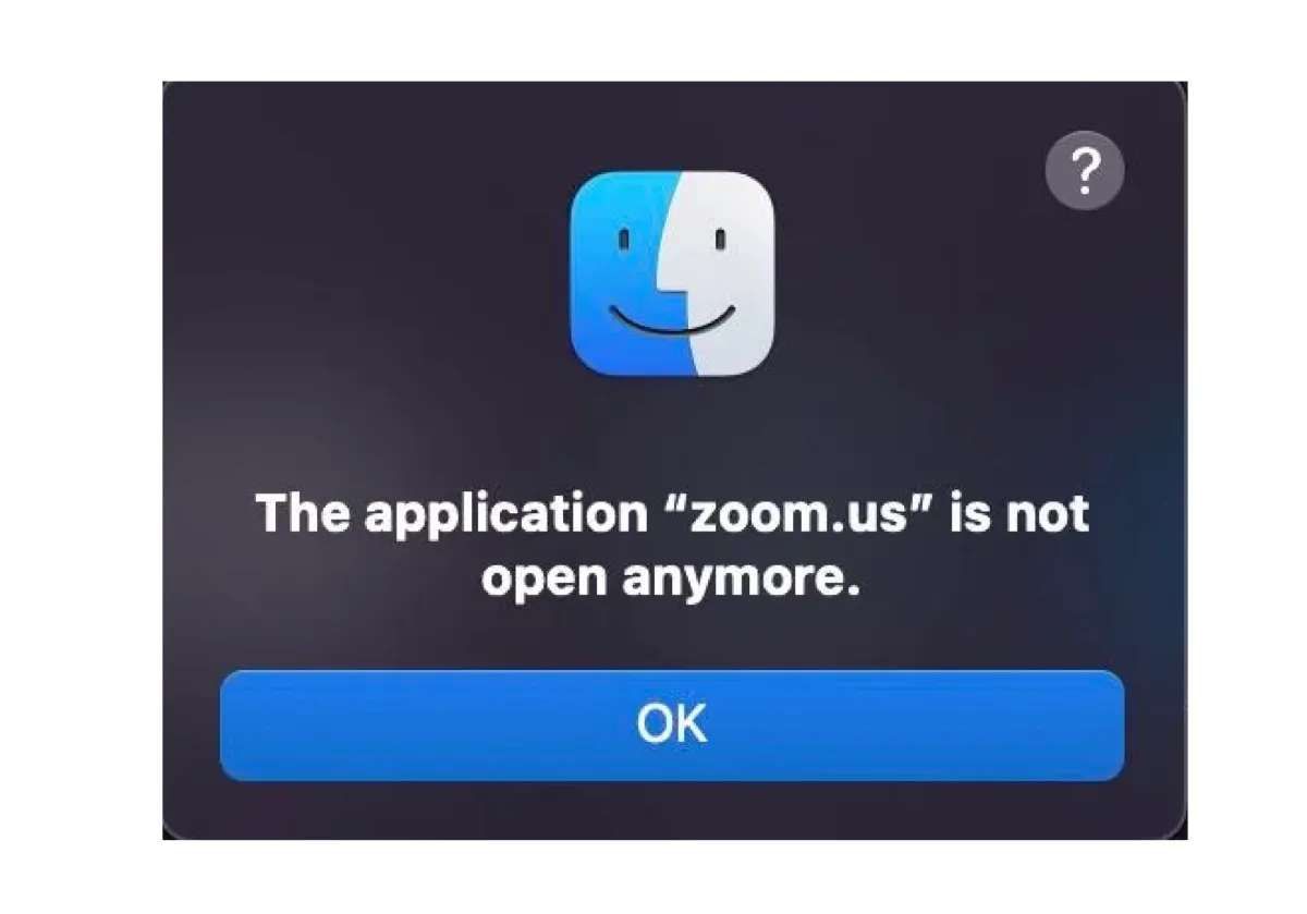您不會感到驚訝,因為該消息的含義正如其所言:您正在使用的應用程序(在本例中為 Zoom)已退出。它類似於“xxxxx 已意外退出”消息,同樣沒有幫助。應用程序退出的原因可能是眾多可能性之一,因此嘗試找出原因可能不值得花時間。最好的方法是有條不紊地解決 Mac 上的問題的一系列常見問題。