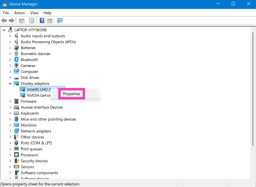 步驟3: 右鍵單擊在驅動程序上並選擇特性。