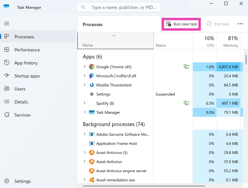 步驟一:按Ctrl + Shift + Esc啟動工作管理員。