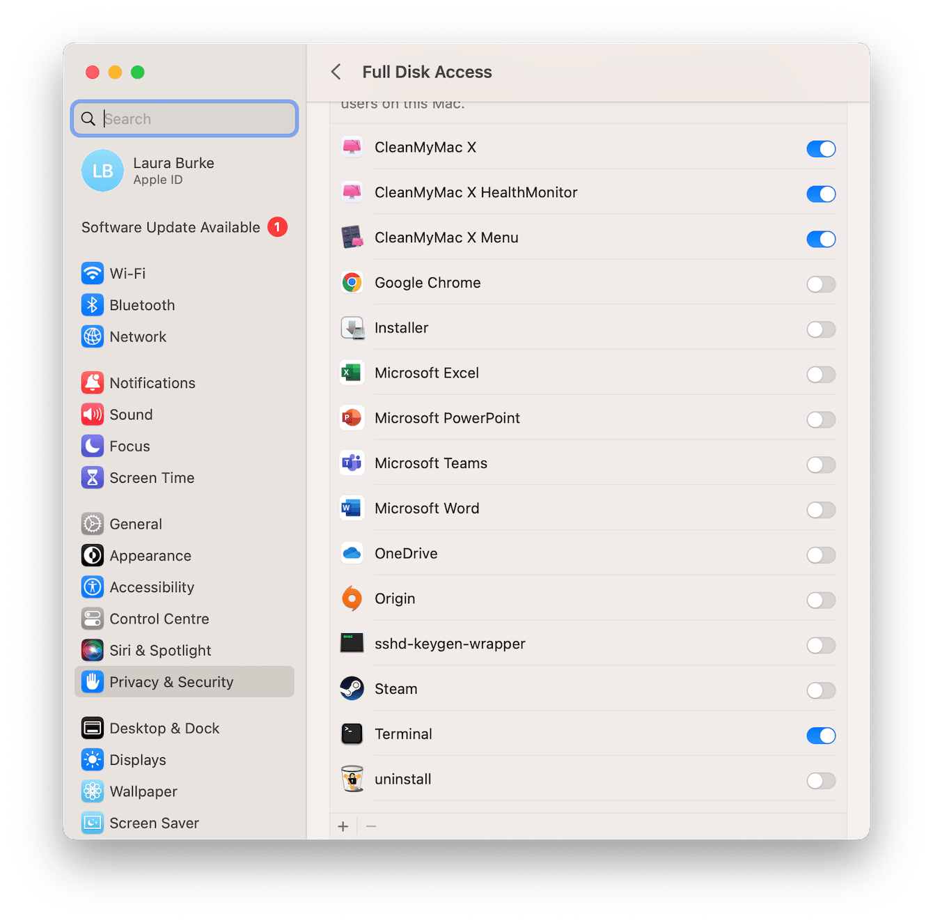 - 從列表中找到並選擇“完全磁盤訪問”。
