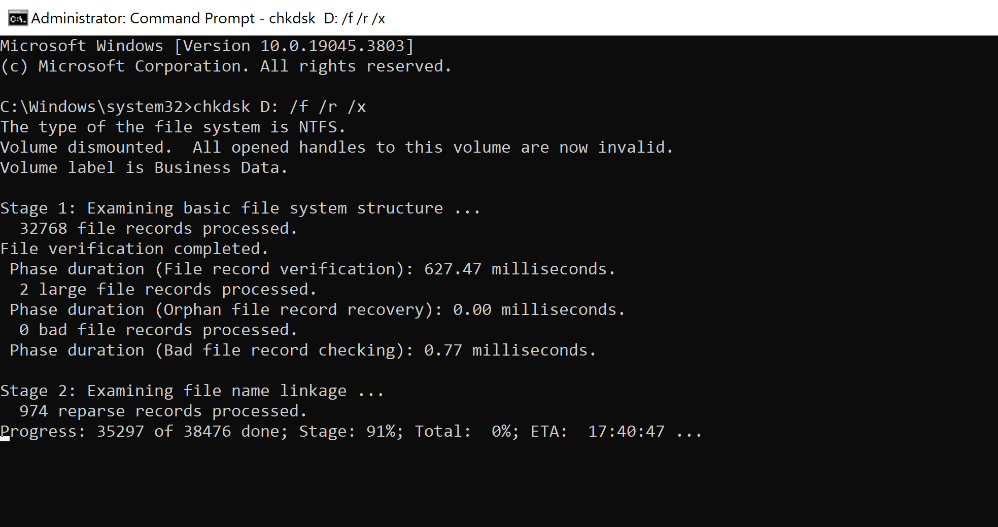 方法3:運行CHKDSK命令來停止代碼video_scheduler_internal_error“命令”步驟一:類型