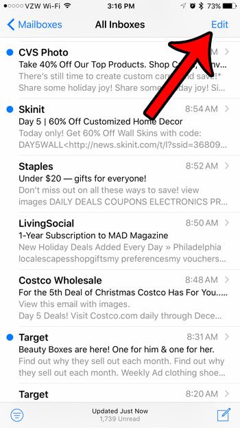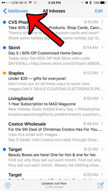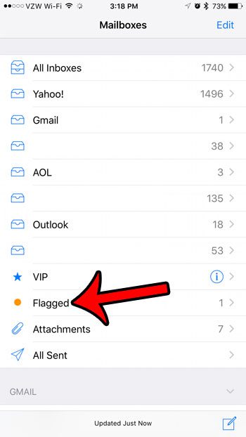 這些步驟是在運行 iOS 10.1 的 iPhone 7 Plus 上執行的。標記電子郵件後,您將能夠在可從郵件應用程序頂層訪問的標記文件夾中查看它。您可以通過點擊屏幕左上角的“郵箱”按鈕,然後選擇“標記”文件夾來實現此目的。繼續閱讀下文,了解如何標記 iPhone 電子郵件。