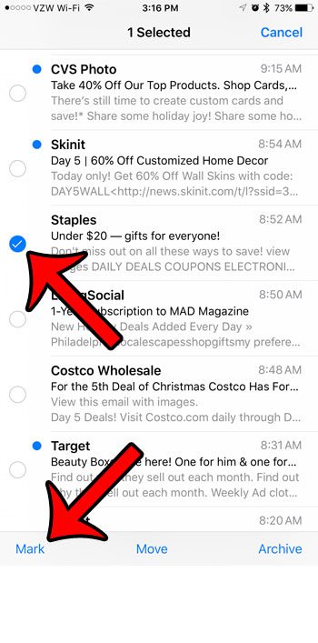 步驟 3:選擇您要標記的電子郵件,然後點擊標記屏幕左下角的按鈕。