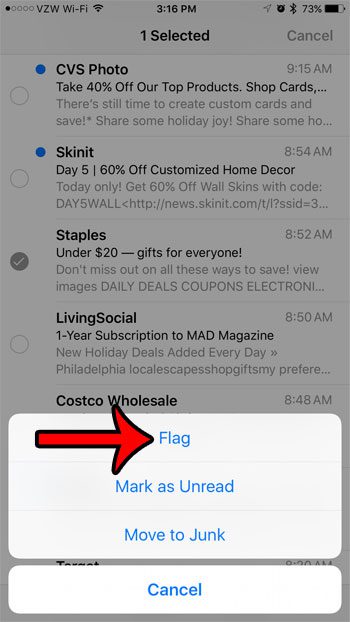 幸運的是,iPhone 上有一項功能,可以讓您“標記”電子郵件,將其放在一個特殊的文件夾中,以便將來更容易找到。