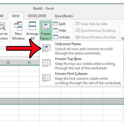 一旦您完成了凍結行的需要,您可以單擊凍結窗格再次按鈕,然後單擊解凍窗格按鈕。