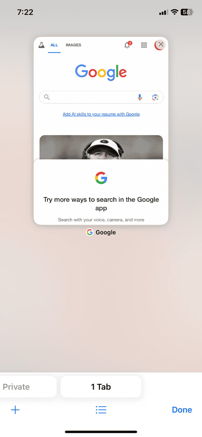 - 切換選項卡組:在屏幕底部,您將看到標有“私人”的選項卡組,以及另一個帶有指示常規選項卡的數字的選項卡組。向左或向右滑動可切換到包含常規選項卡的選項卡組。