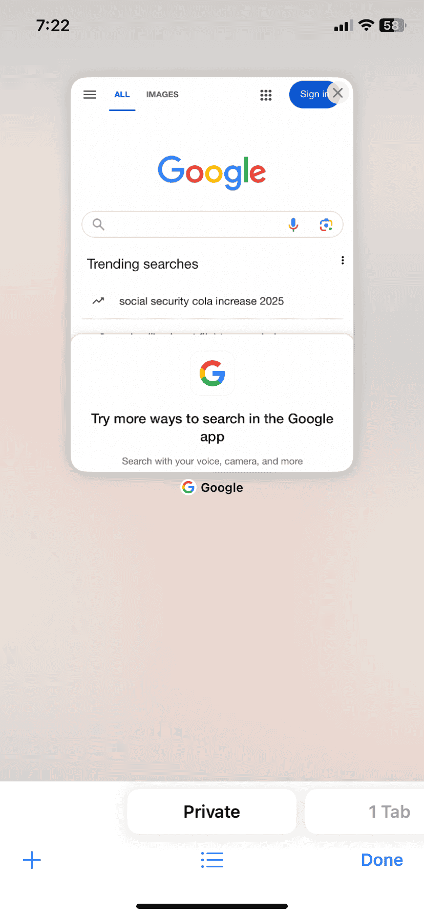 在 Safari 中完成私人會話後,只需選擇屏幕頂部的常規選項卡視圖即可。您的下一個瀏覽會話將照常記錄歷史記錄和 cookie。