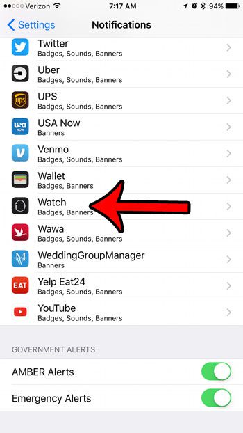 步驟 3:向下滾動並選擇手錶應用程序列表中的選項。
