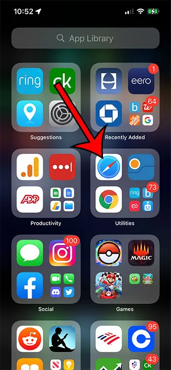 本文中的步驟是在運行 iOS 15 的 iPhone 13 上執行的。本指南假設您已從主屏幕中刪除了 Safari 應用程序,並希望將其恢復到之前的位置。我們將導航到應用程序庫,您可以在其中找到電子設備上的所有應用程序。
