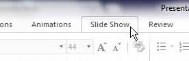 - 單擊幻燈片放映窗口頂部的選項卡。
