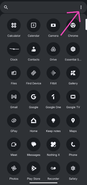要查看 Nothing Phone 上隱藏的應用程序,請轉到應用程序抽屜並將屏幕拖動到右側。