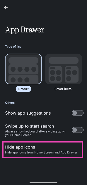 轉到應用程序抽屜,點擊省略號,選擇“隱藏應用程序圖標”,然後點擊您想要隱藏的應用程序。