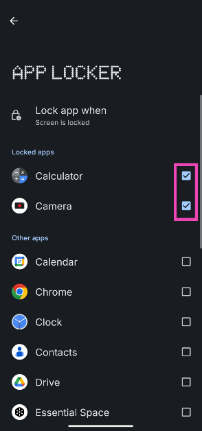 前往設置>應用程序>應用程序儲物櫃,輸入您的 PIN,然後點擊要鎖定的應用程序旁邊的複選框。
