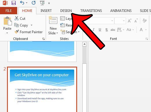 - 選擇設計選項卡。