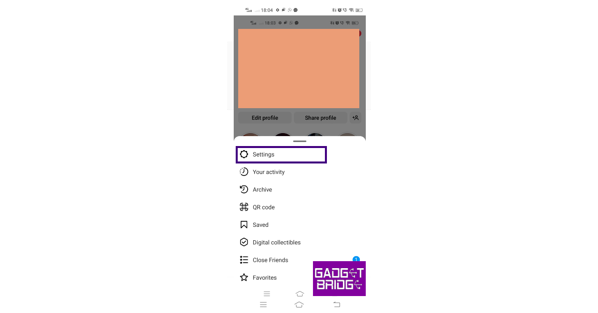 進入個人資料主頁後,您需要點擊屏幕右上角的三條水平線。這將打開 Instagram 菜單。從那裡,選擇位於菜單底部的設置。