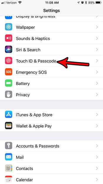 步驟 2:向下滾動並選擇觸摸 ID 和密碼選項。