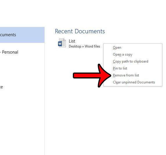 您可以通過右鍵單擊該文檔,然後單擊從列表中刪除選項。