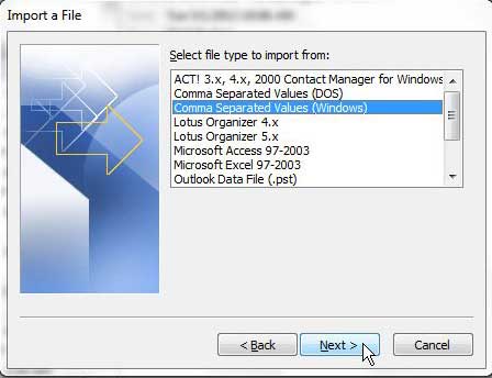 單擊逗號分隔值 (Windows)選項,然後單擊下一個再次按鈕。