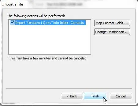 單擊結束按鈕完成將 Excel 列表導入 Outlook 聯繫人文件夾的過程。