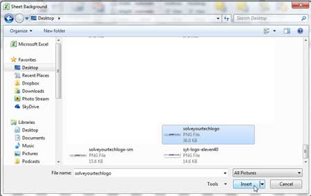 步驟 4:瀏覽到要用作背景的圖像,然後單擊插入按鈕。