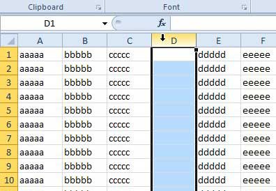 例如我想在列之間插入一列C和D,所以我選擇了列D。