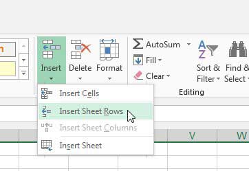第四步:點擊下面的箭頭插入在細胞導航功能區的部分,然後單擊插入工作表行。