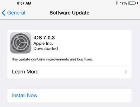 第 4 步:觸摸立即安裝按鈕。請注意,更新需要最少的空間,因此,如果您看到一條消息,表明沒有足夠的可用空間用於更新,您可能需要從 iPad 上刪除一些項目。